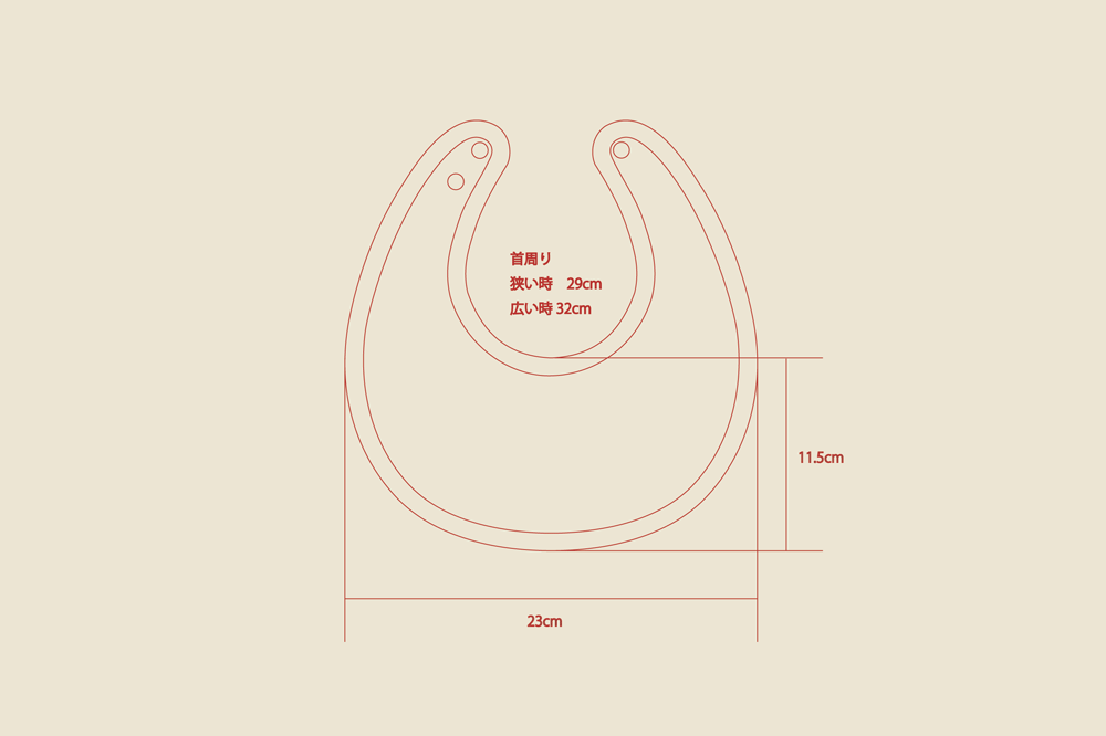 首元にスナップボタンが2ヶ所ありお子様の成長に合わせてサイズ調整が可能です。上質なコットンを使用しているため吸水力が抜群で、よだれの多い時期にも安心してご使用いただけます。 ボタン部分には裏地を取り付けているため強度があり長くご愛用いただけます。