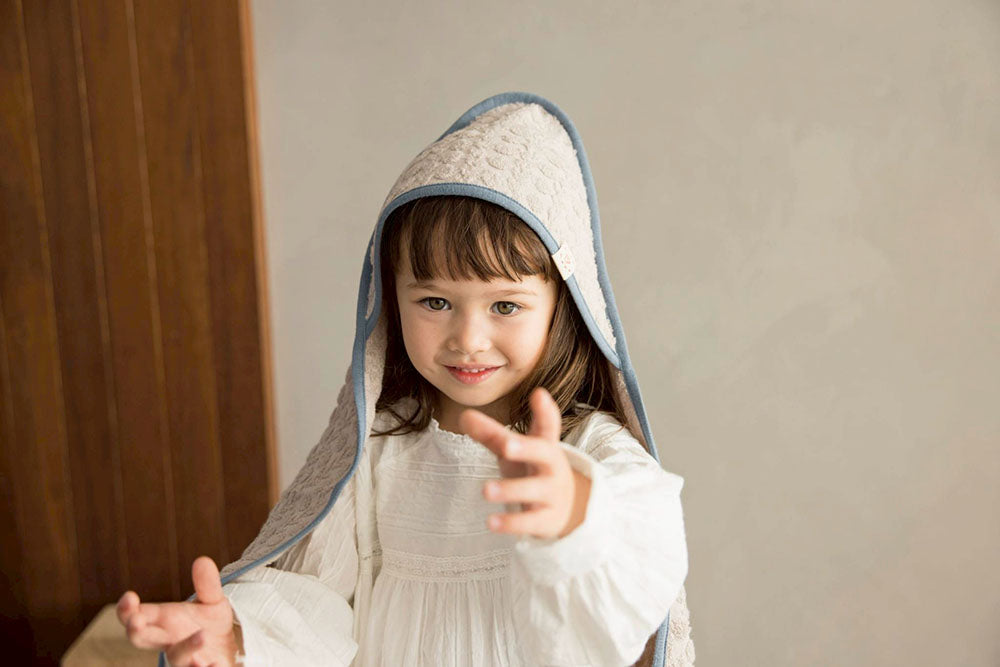 上質なコットンを使用しているため吸水力が抜群で、髪も乾きやすくキッズのお風呂上がりの身支度をサポートします。
