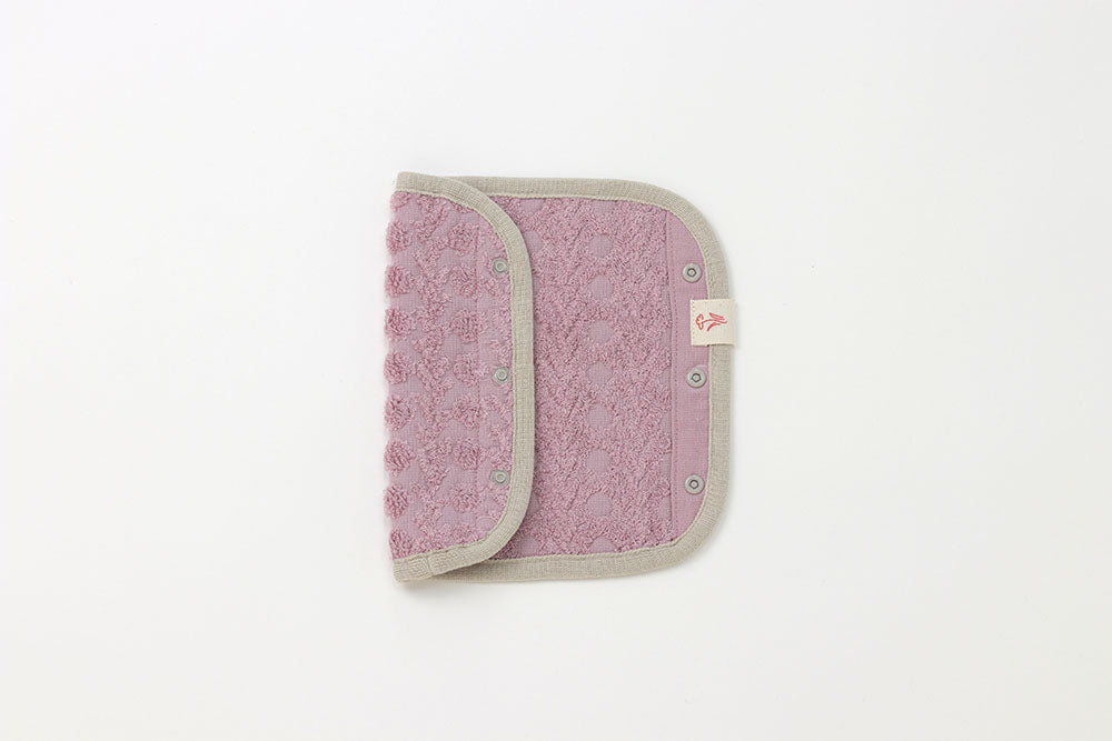 上質なコットンを使用しているため吸水力が抜群で、よだれの多い時期にも安心してご使用いただけます。濡れた面をくるりとずらしていただくと綺麗な面をご使用いただけます。ボタン部分には裏地を取り付けているため強度があり長くご愛用いただけます。