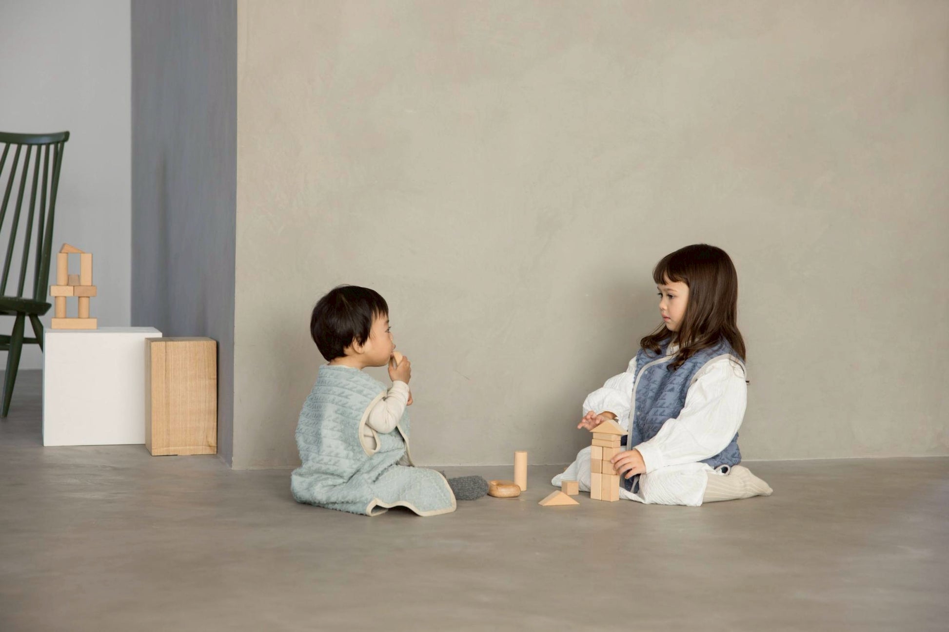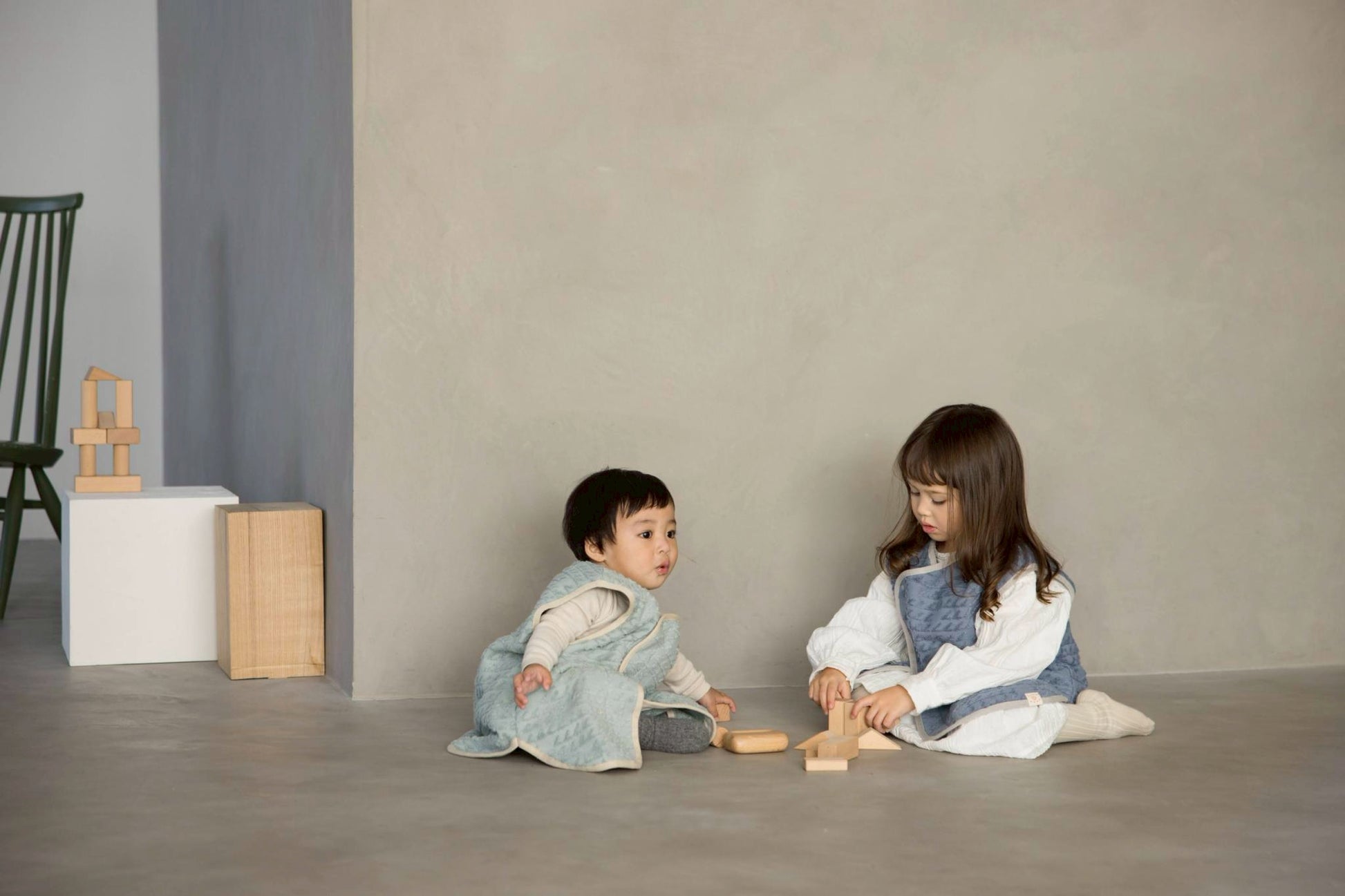 とっておきのふわふわベスト。長くお使いいただけるゆったりとしたサイズ感で、ベビーのスリーパーやキッズのベストとしておすすめです。